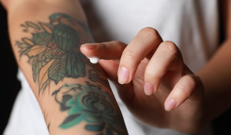 If you suspect any infection in your tattoo, gently wash your tattoo with warm water and antibacterial soap that is fragrance-free. Pat it dry with a clean towel or paper towel—never rub the area with any material. Avoid petroleum jelly or thick ointments, as they may lock the bacteria under the skin and worsen the infection. Apply a breathable layer of healing cream as suggested by your tattoo artist.